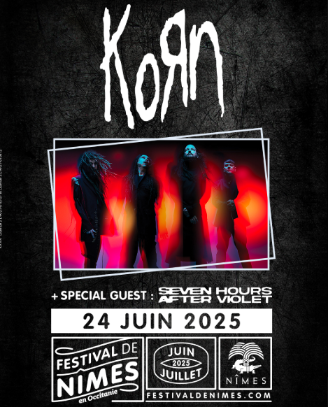 Korn annonce un concert en France. Le groupe se produira aux arènes de Nîmes le 24 juin 2025. Rendez-vous ici pour accéder à la billetterie.